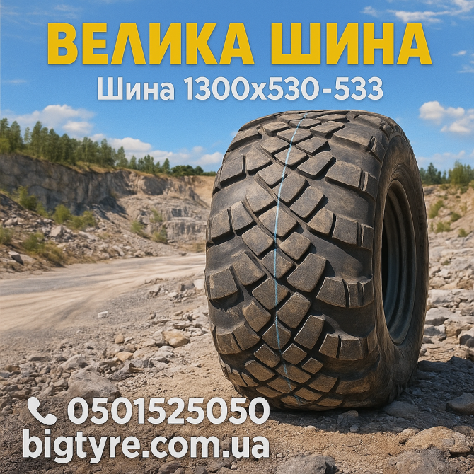 Вантажна шина 1300х530-533 (530/70 R21): Еталон прохідності для важкої техніки Шина типорозміру 1300х530-533 — це високоефективне рішення для колісної техніки, що експлуатується в умовах відсутності дорожнього покриття. Завдяки унікальним геометричним параметрам та агресивному малюнку протектора, ця...