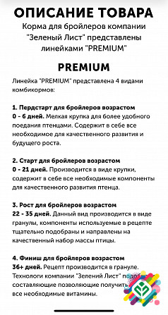 Продаємо комбікорм, премікс та БВД: -Премікси для поросят, курей та бройлера 2,5% - 1900 грн./25 кг ; 773 грн./10 кг. -БВД для поросят старт 25% - 870 грн./25 кг ; 355 грн./10 кг. -БВД для поросят гровер/фініш 15% - 750 грн./25 кг. -БВД бройлер фініш 25% - 870 грн./25 кг ; 355 грн./10 кг. -БВД...