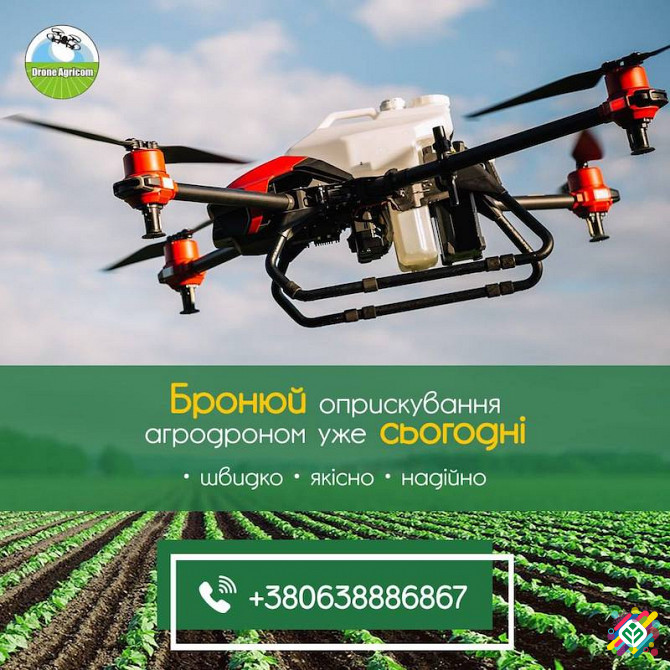 **Технічний опис продукту "Дрон Агріком"** "Дрон Агріком" є інноваційним рішенням для обприскування полів у сільському господарстві за допомогою агродронів. Наша компанія пропонує послуги використання передових технологій, що забезпечують ефективне та якісне обприскування. Ми маємо в своєму розпоря...