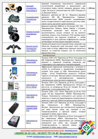 "Gontagro" пропонує широкий вибір обладнання для забезпечення безпеки тварин на фермі та в саду, включаючи Електропастух, електроогорожу, акустичний вогонь та громадянське вогнище. Електропастух та електроогорожа допомагають утримувати тварин в межах визначеної території, захищаючи їх від нападів хи...
