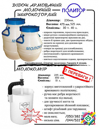 Пропонуємо придбати каністри для молока від виробника. Пластикові харчові каністри мають міцний корпус, герметичне ущільнення та зручні ручки. Вони виготовляються методом духового формування з поліетилену низького тиску. Матеріал поліетилен відрізняється високою міцністю та хімічною стійкістю. Пласт...