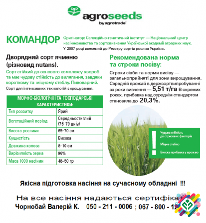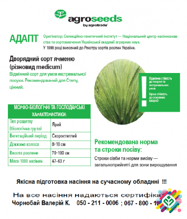 Семена ярового ячменя представлені в асортименті вибіркових сортів, серед яких можна виділити такі як ГАЛИЧАНИН, АДАПТ, ВАКУЛА, КОМАНДОР. Вони відзначаються високою якістю та стійкістю до неблагоприятних умов вирощування. Серед інших доступних продуктів зверніть увагу на семена сої, такі як ХАЙСТАР...