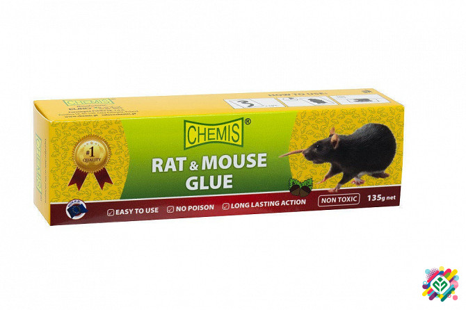 Ефективний засіб для ловлі мишей та комах. Не містить отрути. Клей застосовується як пастка для мишей та ползучих комах, має властивості міцної липкої стрічки. Застосування: Нанесіть клей на тверді поверхні (дерево або густий картон). Для ловлі великих мишей або щурів клей наноситься на широку пове...