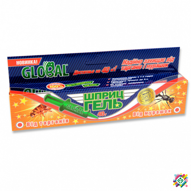 Засіб для боротьби з комахами Глобал є відмінним економічним засобом для ефективної боротьби з тараканами та мурашками. Призначення: Засіб призначений для боротьби з тараканами та мурашками, фасується в зручний шприц для ефективного нанесення, щоб не бруднити руки. Після першого використання тарака...
