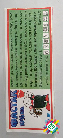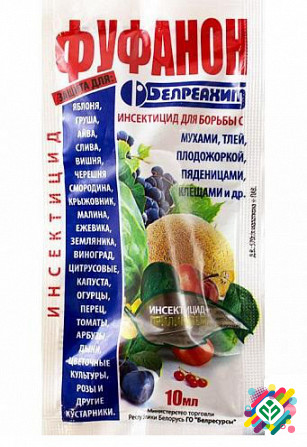 Препарат для знищення шкідників, таких як плодожорка, шовкопряд, квітоїд, п'явка, білець, сарана, листовертка, блошки, цикади, трипси, пилільниці, довгоносики, тли, молі та клопи. Для підготовки розчину рекомендовано розвести в 20-25 літрах води. Оприскування рекомендується проводити в безвітрян...