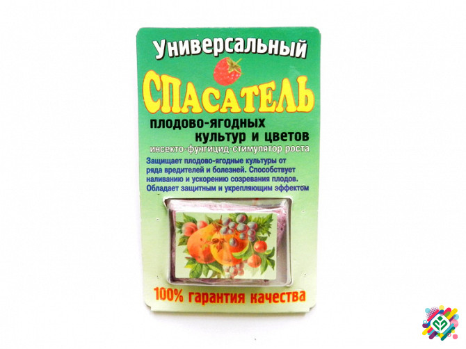 **Спасатель плодово-ягідних культур 20г** Спасатель плодово-ягідних культур 20г - це інсекто-фунгіцидний стимулятор росту, який є універсальним препаратом для захисту плодово-ягідних культур і квітів від шкідників та хвороб. Він сприяє наливанню та прискоренню дозрівання плодів, має захисний та змі...