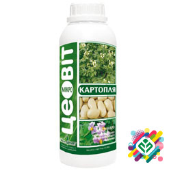 N-50; MgO-50; SO3-53; || Fe-1,3; Mn-25; Zn-11; B-7,2; Cu-1,3; Mo-0,2 Цеовит Картофель - рідкий комплекс мікродобрив (далі - ЖКМУ) для внекореневого живлення, посилені стимулюючою дією регуляторів росту, а також комплексу органічних кислот і біополімерів мікробних полісахаридів. ЖКМУ хелатований ком...