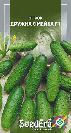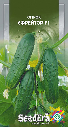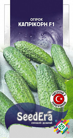 Мінімальне замовлення 10 штук. **Опис продукту:** Раннеспілий гібрид огірка, що відрізняється швидким терміном вегетації від появи сходів до початку плодоношення, який становить 45-50 днів. Плід великої бугорчастої форми, овально-циліндричної форми, інтенсивно-зеленого кольору зі світлими смугами,...