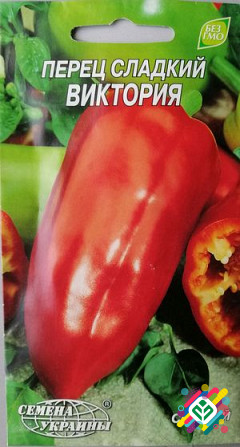 Мінімальна кількість для замовлення: 10 штук Сорт: сорт солодкий Терміни дозрівання: середньостиглий Колір плоду: червоний Форма плоду: конусоподібна Маса плоду: понад 200 г Товщина стінок: 8–9 мм Середньостиглий сорт для вирощування відкритому грунті та плівкових теплицях. Плоди мають вишнево-чер...