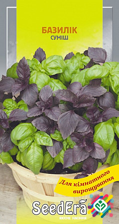 Мінімальне замовлення - 300 грн. Мінімальна кількість - 10 шт. Суміш базилікових рослин досягає висоти 20-30 см і має діаметр до 70 см. Їх листя великі, мають форму ланцету або овалу, зелені та фіолетові. Аромат сильний з характерним смаком, який зберігається навіть у сухих рослинах. Рослина стійка...
