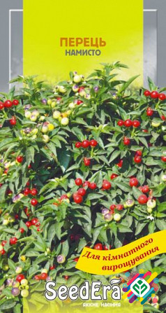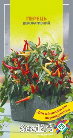 Мінімальна сума замовлення - 300 грн. Мінімальна кількість - 10 шт. Декоративна культура, яка ідеально підходить для вирощування у горщиках. Рослина досягає висоти до 40 см з діаметром культури до 1 см. Колір плодів - суміш жовтого, помаранчевого, червоного та фіолетового. Ця культура має багато ма...