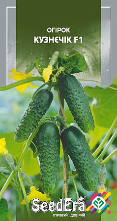 Мінімальна кількість для замовлення - 10 штук. Ранньостиглий сорт огірка. Термін вегетації від сходів до початку збору врожаю становить 45-50 днів, при літньому посіві - 30-35 днів. Плоди мають овально-циліндричну форму, великі бугорчасті, з чорною шкіркою, завдовжки 9-12 см і вагою 70-130 г. Забар...