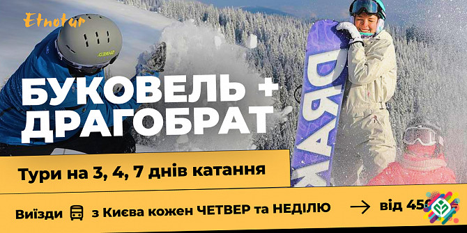 **Автобусні тури на гірські курорти Буковель і Драгобрат з Києва з супроводом від Etnotur** Etnotur пропонує вам можливість відправитися на захоплюючі автобусні тури до двох популярних гірських курортів України - Буковель та Драгобрат. Наша висококваліфікована команда забезпечить вам комфортний тра...