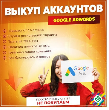 Придбання облікового запису Google AdWords Вік облікового запису: 3 місяці. Країна реєстрації облікового запису: Україна. Мінімальні витрати: від 2000 гривень. Стан облікового запису: без блоків, можливість зв'язку. Контактна інформація: - Телеграм: @skypka_akk - Електронна пошта: skupkaads@gma...
