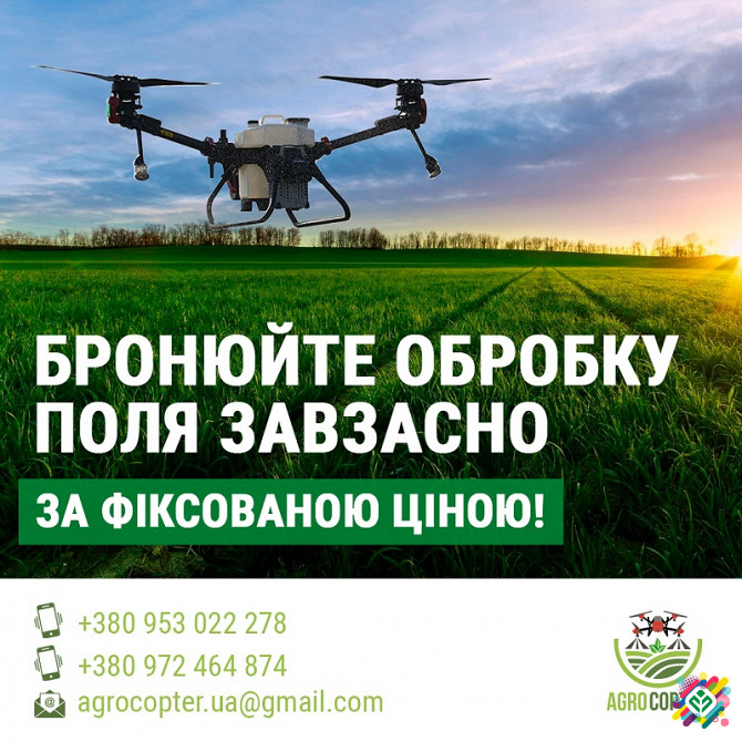 Компанія AGROCOPTER спеціалізується на наданні послуг за допомогою АГРОДРОНІВ для внесення захисних засобів і органічних речовин на сільськогосподарські культури. Наші послуги включають внесення таких захисних засобів, як гербіциди, інсектициди, фунгіциди, десиканти, рідкі родентициди та інші, а так...