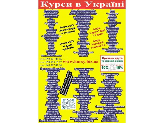 Курси кухар, зварник. електрик, слюсар, токар, маляр, перукар, манікюр