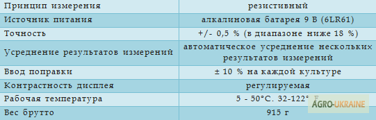 Вологомір зерна є портативним приладом, призначеним для швидкого визначення вологості зернових та олійних культур. Цей прилад відповідає на соціальне замовлення різних споживачів, починаючи від невеликих фермерських господарств і закінчуючи великими сільськогосподарськими підприємствами. Вологомір ...