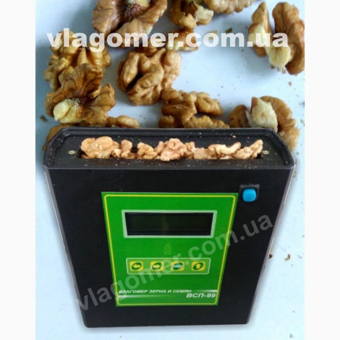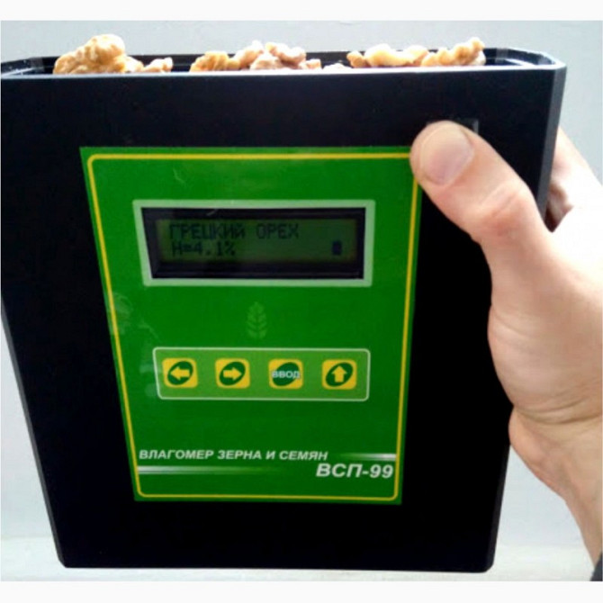 Портативний вологомір для зерна, насіння та горіхів VSP-99 (можлива настройка під будь-який інший вид горіхів: арахіс, кешью) призначений для оперативного вимірювання вологості різноманітних продуктів, таких як: соняшник, грецький горіх, просо, пшениця, ячмінь, гречка, кукурудза, соя, горох, овес, р...