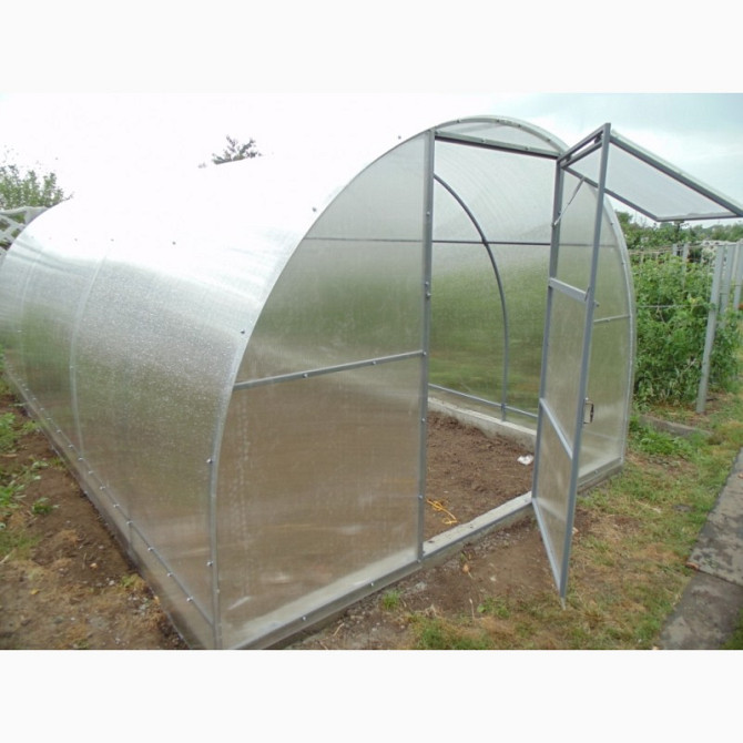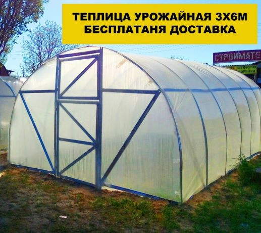 Ширина теплиці становить 3 метри, висота - 2 метри, довжина необмежена. Теплиця оснащена дверима та двома віконцями з доводчиками. Каркас виготовлений зі сталі, покритий порошковою фарбою, що забезпечує простоту збірки та надійність в будь-яких погодних умовах. Конструкція розрахована на тривалий те...