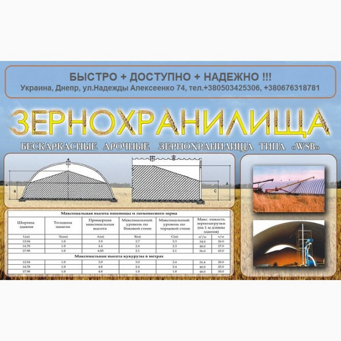 Арочні зерносховища від компанії "Наше предприятие" виготовлені з високоякісної оцинкованої сталі і поставляються та монтується нашою компанією. Ці зерносховища виробляються в місті Дніпро (Україна) на обладнанні фірми WSB (США). Зернові ємності сховищ можуть бути від 200 до 8000 тонн. Наприклад, з...
