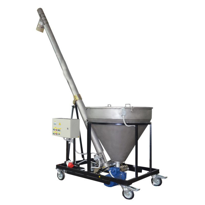 Шнековий навантажувач для сипучих продуктів, з продуктивністю 4000 літрів на годину та потужністю 2,2 кВт, є ідеальним рішенням для транспортування різноманітних сипучих матеріалів, таких як зерно, цукор, сіль, борошно та інші подібні продукти. Цей навантажувач має пересувну конструкцію, що забезпеч...