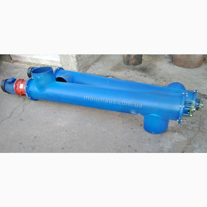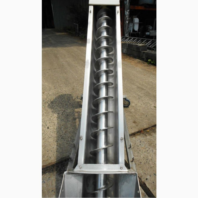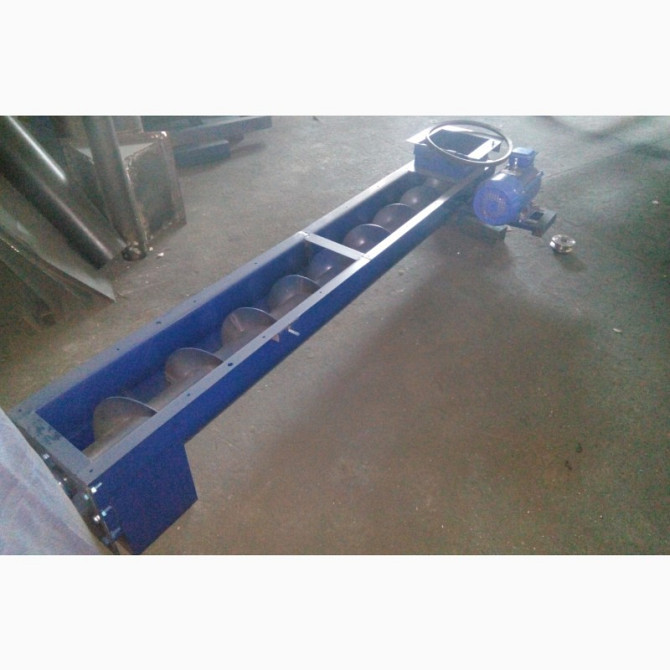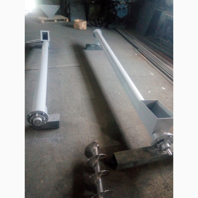 Технічний опис: Шнекові транспортери з відкритим гвинтом в місці завантаження призначені для ефективного та безперервного забору вантажу з боку конструкції. Ці шнекові транспортери мають діаметр гвинта 108 мм та виготовляються в трубі, кожен метр погонний шнека має окрему ціну. Привід для руху шне...