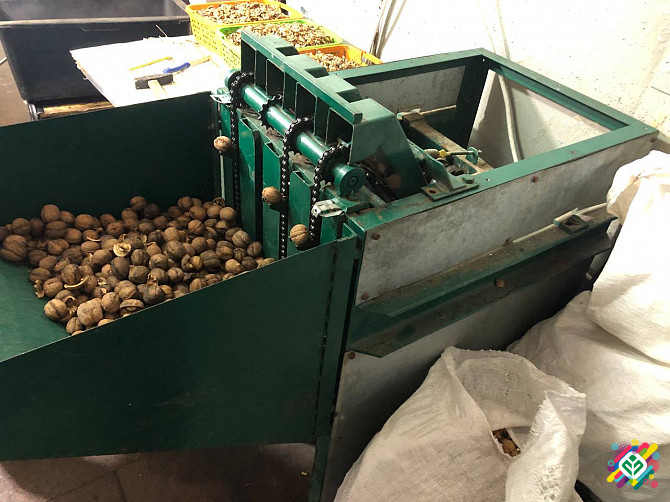 Продається комплекс обладнання для переробки волоського горіха, що включає в себе горіхокол, автоматичний доколкувач горіха, вібросито, автоматичний піддатчик горіха, аспіраційну установку та конвеєр. Горіхокол є конусного типу і має швидкість розколу 50 кг на годину, розділяючи горіх на фракції 6 м...