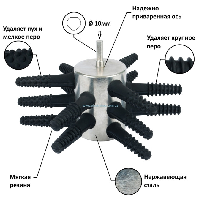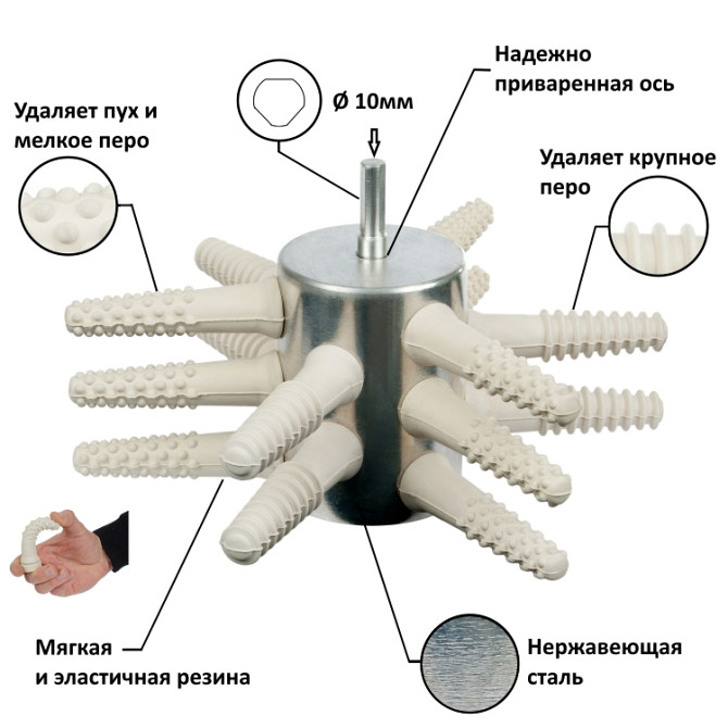 Насадка на дрель для ощипыванияптицы100-15 производства компании «Плакер-Украина» предназначена для ощипа кур, бройлеров иуток.Эта перосъемная насадка создана для самого деликатного ощипа. Работает мягко благодаря бильным пальцам из белой резины. Белаярезинаявляется более эластичной, мягко снимает п...