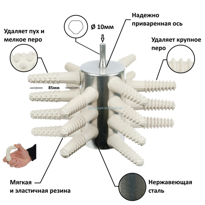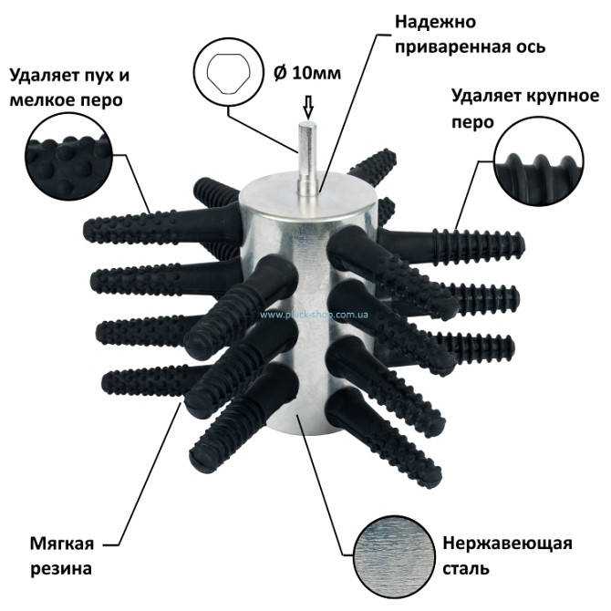 Перосъемная насадка для птицы 133-21 производства компании «Плакер-Украина» благодаря большей площади рабочей поверхности и дополнительным бильным пальцам отлично подходит не только для снятия пера с кур или бройлеров, но также для ощипа уток, гусей ииндюков.Эта перосъемная насадка создана для самог...