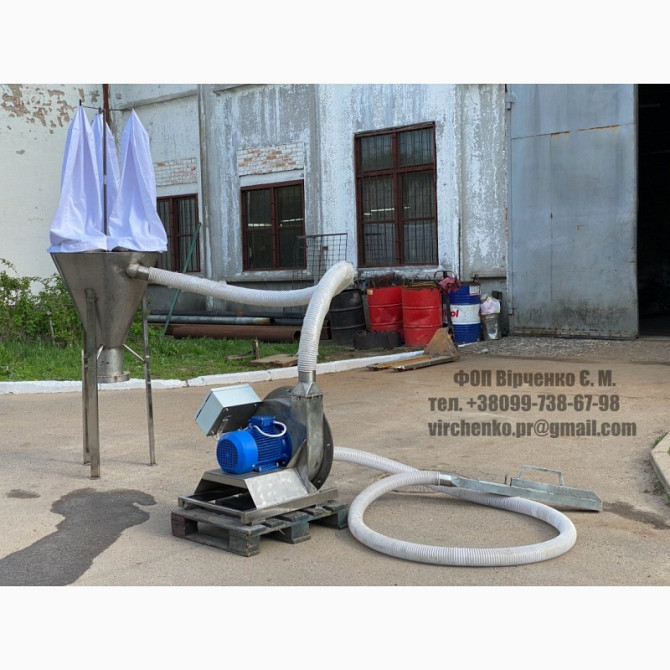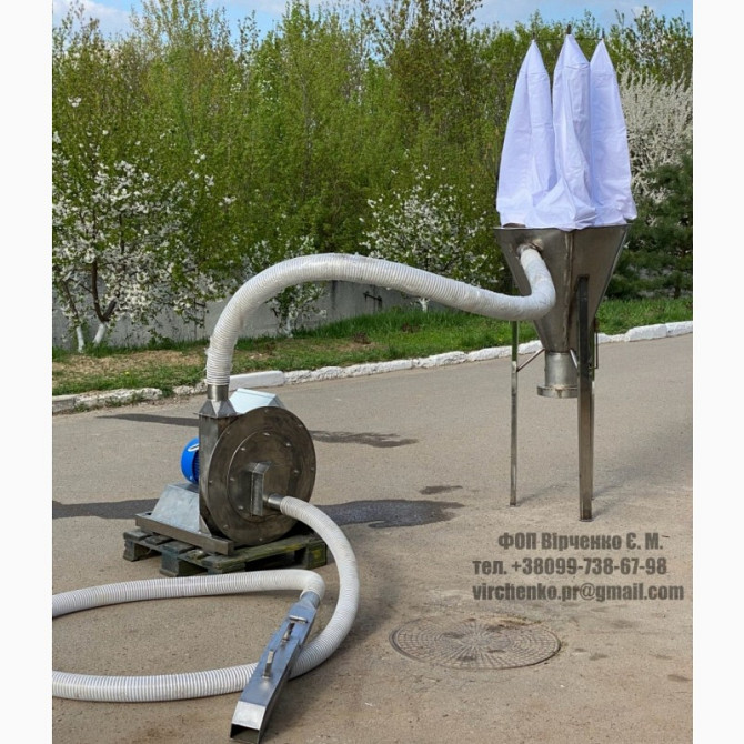 Устройство засасываетзерно(сырье) для измельчения, измельчает и подает в смеситель или бункер накопитель.Мощность электродвигателя [кВт] 18.5 OMEC Motors Нідерланди.Длина засасывания [м] 10/15/20/25Длина подачи [м] 3+Производительность [кг/ч] 1500Питания (три фазы) 380 В Фракция измельчения регу...
