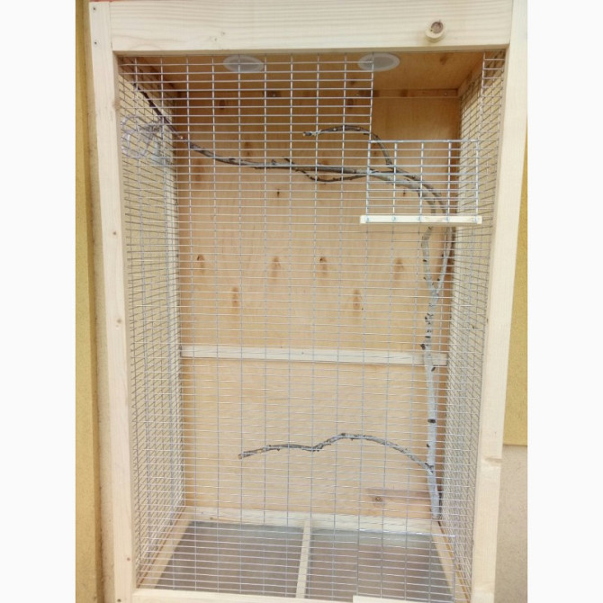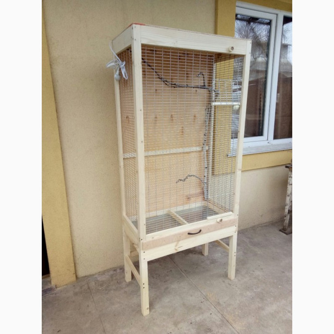 Клеткавольер для мелкойдомашней птицыпопугаи, кеноры и других на подставке. Отличный вариант для создания уголка релакса в Вашем офисе и доме.Вольер 80*40*130, задняя стенка, пол, потолок - фанера. Боковые стенки, дверь - сетка сварная 50*16мм. Выдвижной лоток из оцинкованного листа. Подставка высот...