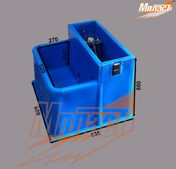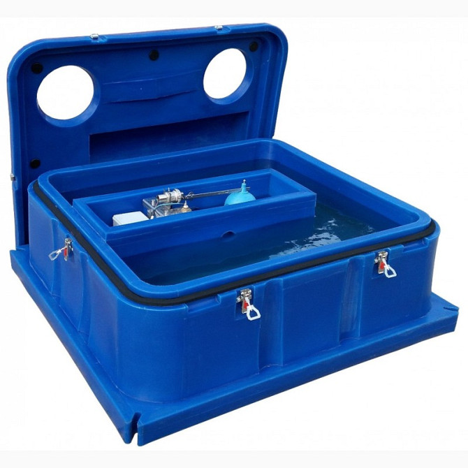 Об'єм 30л, довжина 640мм, ширина 690мм, висота 560мм, пропускна здатність клапана 17л/хв при 3 атм., нагрівальний елемент 220/36В, потужність 120Вт. Поїлка складається з корпусу з відсіком обладнання. У відсіку обладнання розташовується клапан-регулятор рівня води і система підігріву води в холодну ...