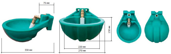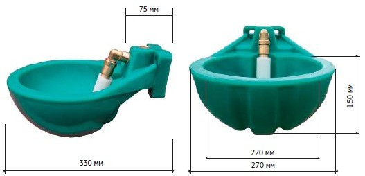 Поїлка індивідуальна об'єм 3 літра, пропускна спроможність клапана 10л/хв при 2 атм., 14л/хв при 3 атм., 16л/хв при 4 атм., нагрузка до деформації 30кг. Розміри вказані на фото!ТОВ Металпласт Київ