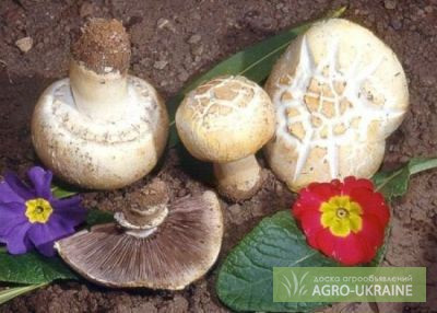 **Шампіньйон кривий (Аgaricus abruptibulbus)** Шампіньйон кривий належить до високоякісних зернових маточних міцеліїв шампіньйонів. Цей продукт виготовляється лише з високоврожайних і неприхильних до умов штамів. Кожен пакет (100 г) розрахований на площу 2,5 м² і коштує 89 грн. Мінімальне замовленн...