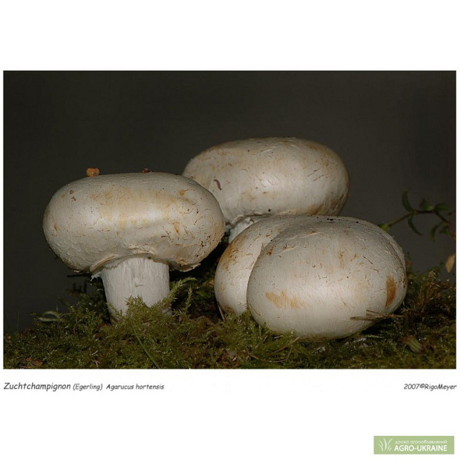 Міцелій (семена/розсада грибів, грибниця, посадковий/посівний матеріал грибів) шампіньйона бернардовидного та інших штамів шампіньйонів призначений для вирощування грибів в приміщенні в домашніх умовах або в тіньових місцях на відкритих ділянках приусадебних господарств. Продаж високоякісного зернов...