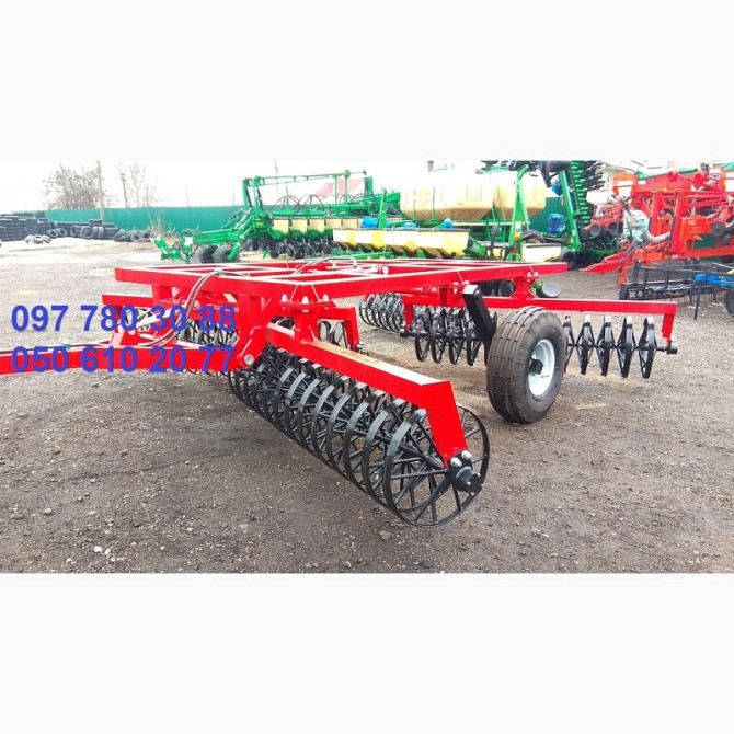 **Дискова борона АГД-2.4 ДСМ: Технічний Опис та Характеристики** Дискова борона АГД-2.4 ДСМ є навісною двухрядною машиною, спеціально розробленою для основної обробки поля та підготовки ґрунту перед посівом зернових та технічних культур. Оснащена дисками діаметром 660 мм та масою 900 кг, ця борона ...