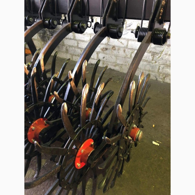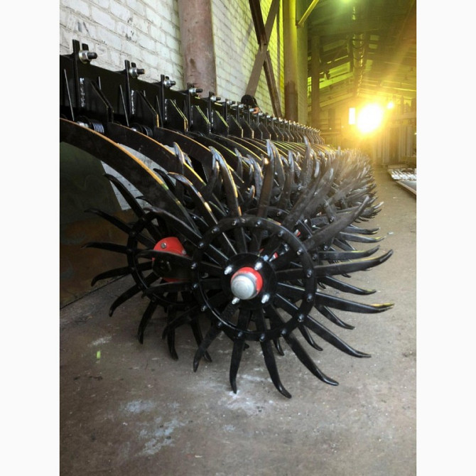 Ротаційна борона мотузкова "Агро клевер": Технічні характеристики: - Ширина захоплення: 6 метрів - Суцільний брус: 140x140x6 мм - Відстань між колесами: 100 мм - Колеса на закритих підшипниках (2 шт. на одному колесі) - Зуб виготовлений за американським аналогом, з повністю повтореною геометрією і м...