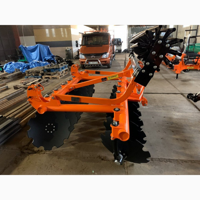 У нас в наявності дискові борони від виробника ТерФед (ЧП ФЕДОРЕНКО) з Білоцерківського регіону. Ці дискові борони призначені для обробки ґрунту тракторами від 80 к.с. до 130 к.с. Глибина обробки становить від 5 до 20 см, а регулювання глибини здійснюється за допомогою катка. **Технічні характерист...