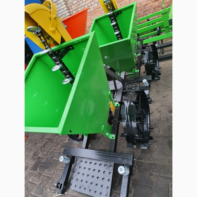 Новаторська посівна машина для вашого господарства Технічні характеристики: - Тип: начіпний - Продуктивність: 0,1 га/год - Крок висаджування: 20 см, 25 см, 30 см - Глибина висаджування: 5-15 см - Діаметр загортачів: 30 см - Об'єм бункера: 45 л - Діаметр опорно-приводних коліс: 35 см - Сумісність з ...