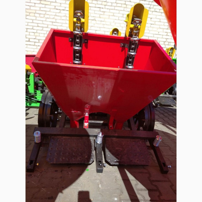 Дворядна картоплесаджалка з міжряддям шириною 50-55 см призначена для використання з тракторами потужністю від 20 к.с. Частота висадки регулюється, що дозволяє ефективно висаджувати картоплю з відповідним інтервалом. Чашечки виготовлені з чавуну або цинку, що забезпечує довговічність та надійність п...