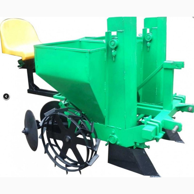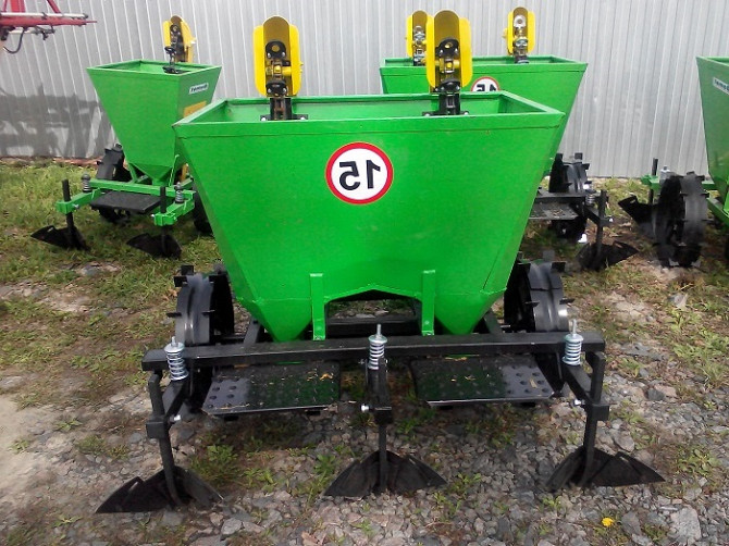 Двухрядна навісна сажалка для картоплі призначена для встановлення на трактор за допомогою заднього навісного пристрою (ЗНП). Ця сажалка взаємодіє з тракторами, які обладнані ЗНП другої категорії. Вона виконує всі операції в одному робочому циклі, пов'язаних із висадкою картоплі, а саме: викопує бор...