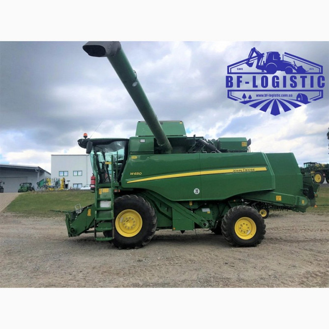 Зернозбиральний комбайн John Deere W650 2016 року Технічні характеристики: - Тип: Зернозбиральний комбайн - Марка: John Deere - Модель: W 650 - Рік випуску: 2016 - Двигун: PowerTech об'ємом 9 літрів з 6 циліндрами - Потужність двигуна: 250 кВт / 340 к. с. - Нахил двигуна: 298 м / год - Нахил бараба...