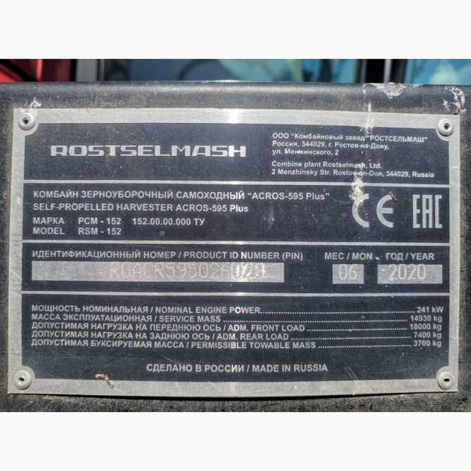 Комбайн РСМ-152 ACROS-595 PLUS відноситься до сільськогосподарської техніки, яка призначена для збирання зернових культур. Вироблений у 2018 році, він є надійним і ефективним засобом для обробки полів. Технічні характеристики: - Модель: РСМ-152 ACROS-595 PLUS - Рік випуску: 2018 - Стан: робочий - ...