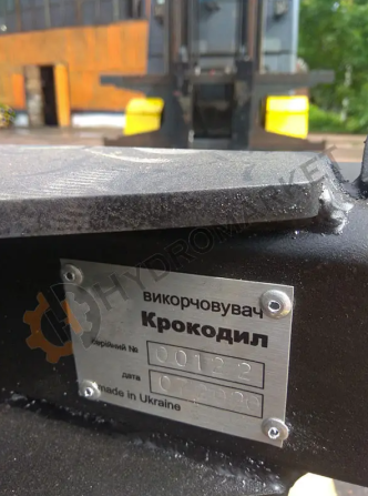 **Технічний опис корчувача "Крокодил"** Корчувач "Крокодил" призначений для викорчовування дерев та кущів з діаметром до 12 см. Він має ширину 1.2 м, висоту 0.47 м, довжину 1.2 м та максимальне розкриття лап 1.2 м. Вага корчувача становить 255 кг. Цей корчувач обладнаний гідравлічним регулятором п...