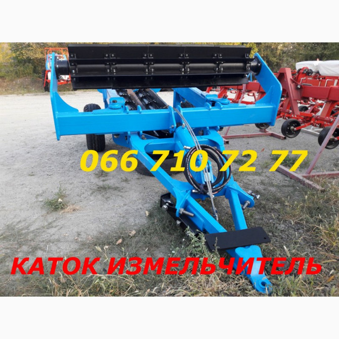 **Технічний опис: Каток-ізмельчувач прицепний КИП-6** Каток-ізмельчувач прицепний КИП-6 призначений для рубання та подрібнення пожнивних залишків рослинності, таких як соняшник, кукурудза, солома та інші зернові культури. Цей пристрій забезпечує якісне подрібнення пожнивних залишків, що сприяє пода...