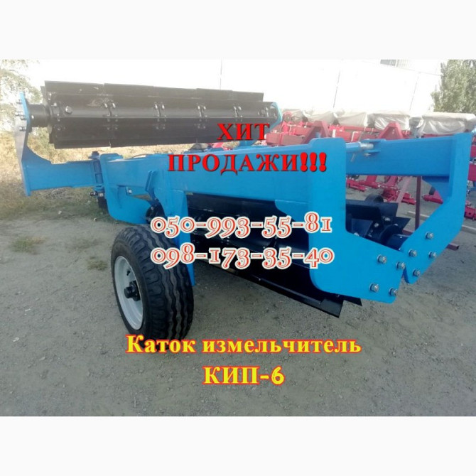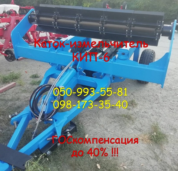 Каток-ізмельчатель КИП-6 призначений для подрібнення рослинних залишків після соняшнику, кукурудзи та стерні, вирівнювання та часткового мульчування поверхні поля. Робоча ширина захоплення становить 6 метрів, вага складає 1900 кг без води та 2100 кг з водою. Може бути пов'язаний з тракторами класу 1...