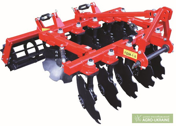 Продається дисковий плуг ПДМ-1.8, розроблений для основної та передпосівної обробки ґрунту під зернові та технічні культури, що не мають каміння та інших перешкод, з вмістом вологи до 27%, у специфікаціях до 0,9 кгс/см2 удельного опору та твердістю до 35 кгс/см2 (3,5 МПа). Під час одного проходу аг...