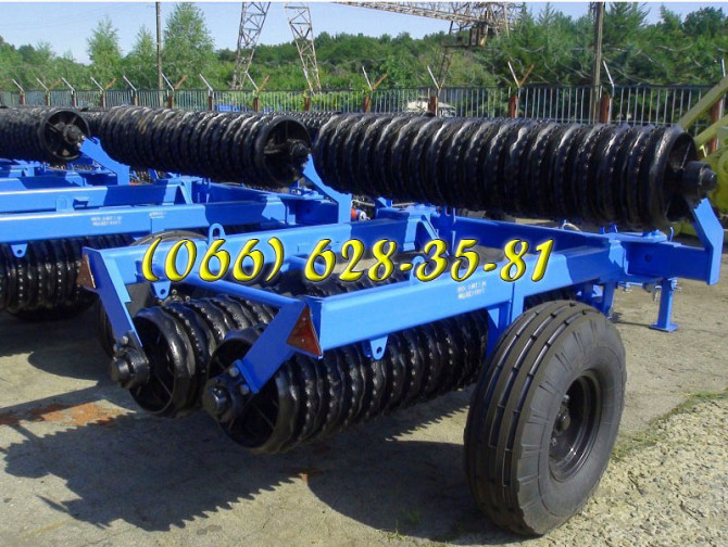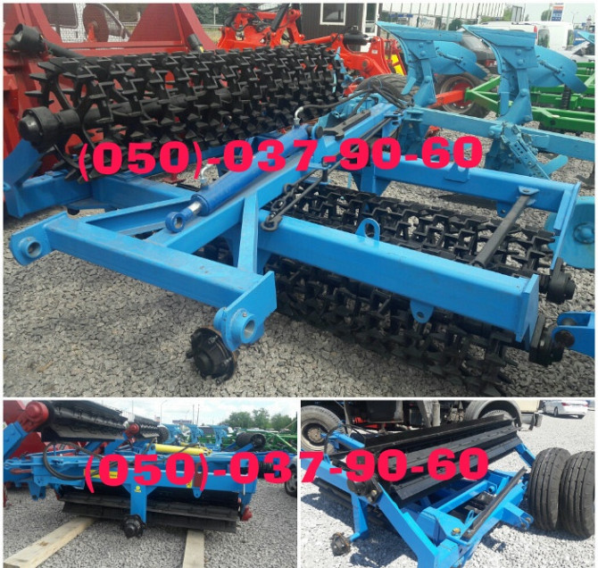 Характеристики катка КЗК-6: - Ширина захвату: 6 метрів - Діаметр кільця: 520 мм - Кільця виготовлені зі сталі - Вага: 3300 кг Каток КЗК-6 оснащений гідравлічною системою, що дозволяє йому перебувати в робочому положенні. У транспортному положенні каток може переміщатися по дорогах загального корист...