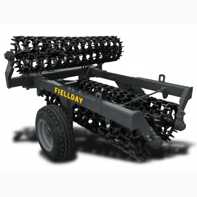 **Причіпний шпоровий коток для сільськогосподарських робіт** Причіпні шпорові котки з довжиною варіантів 3м, 6м та 9.2м призначені для різноманітних операцій, таких як передпосівне та післяпосівне прикочування ґрунту, розпушення верхніх шарів ґрунту, руйнування кірки і вирівнювання поверхні поля пі...