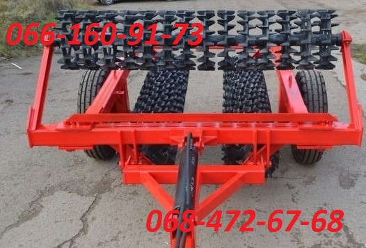 Кольчато-шпоровий каток ККШ-6 для ущільнення ґрунту перед та після посіву Кольчато-шпоровий каток ККШ-6 призначений для ущільнення ґрунту перед посівом, вирівнює поверхню поля, розбиває грудки та ущільнює занадто розгіллястий ґрунт. Передпосівне ущільнення виконується з метою затримання вологи в ґр...